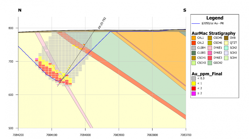"The high-grade gold mineralization in the Aurex Hill zone (East Powerline Deposit) and the Airstrip Deposit reinforces our understanding of the high-grade mineralization and achieves the objective of targeting areas suitable for starter pits," said Tara Christie, President and CEO. "In the Aurex Hill zone, high-grade sheeted quartz veins show potential for further expansion of the deposit, while the high-grade structures (marl) with brecciated quartz represent a new drill target (Figure 4). In Airstrip, the skarn mineralization in Cal 2 (lower horizon) shows consistent high-grade gold mineralization with holes AX-25-792 and AX-25-731, indicating the potential for eastward expansion at Airstrip (Figure 7 and 10)."