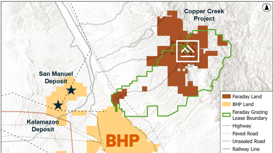 Paul Harbidge, President and CEO of Faraday, commented, "This agreement provides the opportunity for a transformative acquisition as it looks to consolidate two adjacent and complementary assets in the heart of the Arizona copper corridor at a time when sourcing of critical minerals within the USA is essential. The combined project has the potential to become a multi-generational copper district delivering made-in-America copper, while providing significant economic opportunities to the local communities. This would allow for the optimization of infrastructure and minimized environmental footprint compared to each project advancing independently. I am delighted for the opportunity to have BHP join Faraday as a strategic investor."