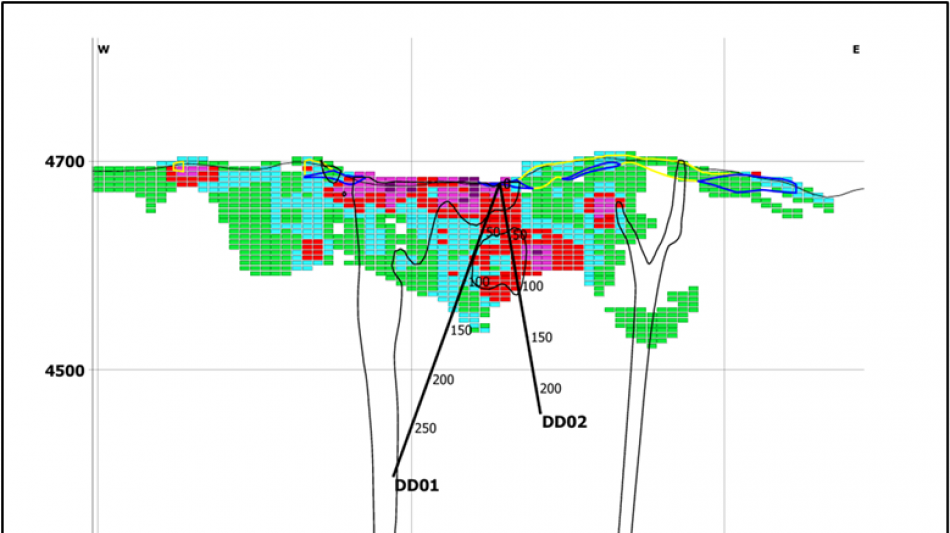 Assay results have been received for DD01, although some intervals with initial "over-limit" results remain to be re-assayed. The hole intersected Vizcacha hydrothermal breccia, as predicted (Figures 2 & 3).