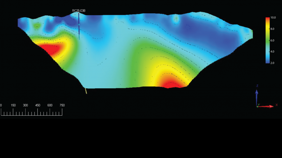 Importantly, the geochemical results from drill hole RC25-038 (see further in this announcement) and historical surface sampling have also been brought into this combined analysis, allowing the geophysical models to be ground-truthed against real geochemistry.