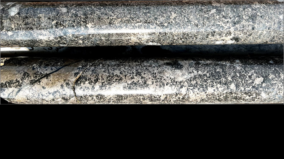 Figure 2 - Core from the Camp Zone deposit area drill hole CZ2025-01 showing near-surface net-textured to semi-massive mineralization.