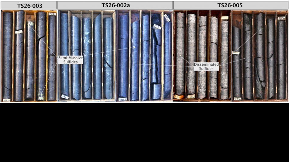Since commencing drilling in late January 2026, as announced on January 22, 2026, the Company has completed three diamond drill holes across the Titac South deposit. Drill holes TS26-002a (309 m), TS26-003 (410 m), and TS26-005 (477 m) have been completed for a total of 1,196 metres drilled to date as part of a planned six-hole fence designed to systematically evaluate copper mineralization across the intrusion.