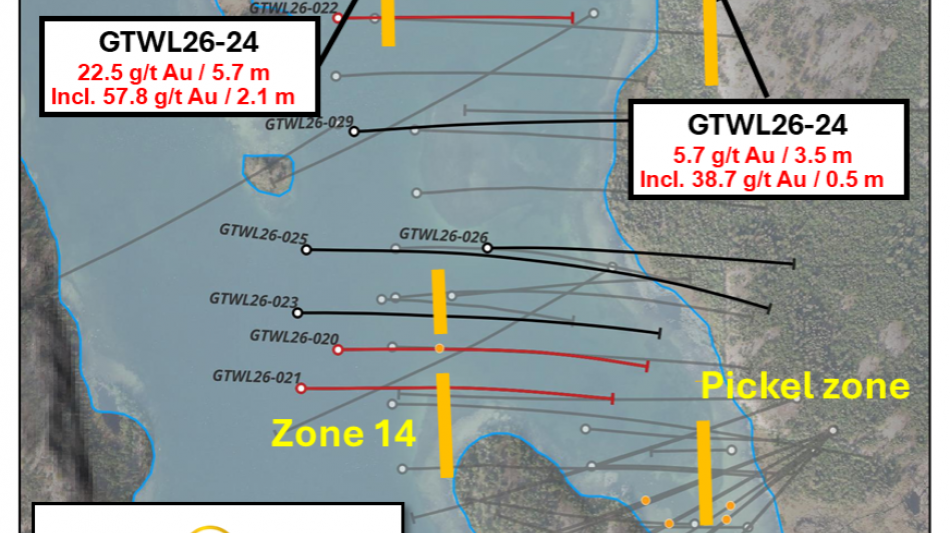 Chairman and CEO, Gerald Panneton, commented, "Our now completed winter drilling program has been successful in expanding the Walsh Lake gold corridor beyond the known 500m strike length on our 100% Walsh Lake property block. The Walsh Lake property area is strategically situated 20 kilometres northeast of Yellowknife and is showing excellent potential for more discoveries to be made. With the success of hole GTWL26-024, we have added two new zones in this hole indicating more drilling to be done to follow up on the success of the 2022 and 2026 drill programs. These new zones will be a contributing factor in re-establishing Yellowknife as a prime location for many years of further exploration. It also compliments our development of satellite deposits, and the restart of the historic Con Mine once the purchase is completed (see news release November 22, 2021)."