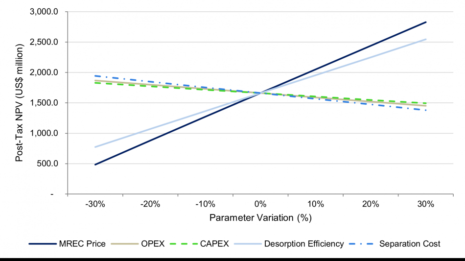 The REE prices assumed are: US$93.88/kg Pr oxide, US$93.88/kg Nd oxide, US$3,568.94/kg Tb oxide, US$1,178.78/kg Dy oxide.