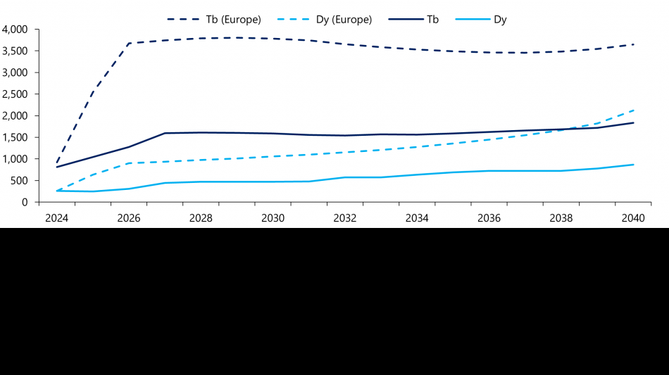 The supply of the LREEs, Nd (primarily) and Pr (to a lesser extent), from existing producers and new projects appears to be sufficient to satisfy demand until at least the end of the decade. However, the supply of the HREEs Dy and Tb, as well as the HREEs samarium (Sm), gadolinium (Gd) and yttrium (Y), is more problematic as far fewer projects target HREE deposits. The market will likely have to rely on China and Myanmar/Laos in the short to medium term for supply of HREE feedstocks, although production of ion-adsorption REE ores in southern China is declining.