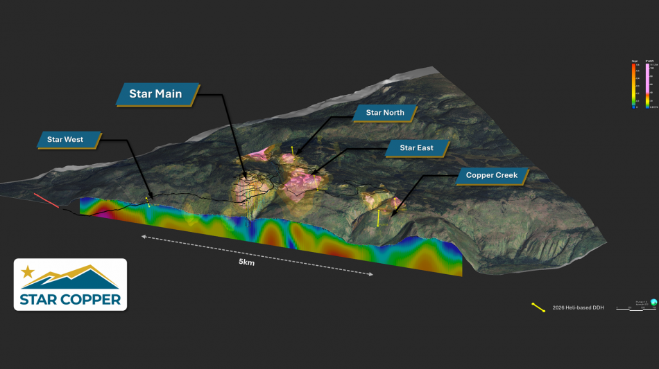 Company CEO Darryl Jones notes, "With over $12 million in flow-through capital in place, we are fully funded to execute our planned objectives aimed at delivering a maiden resource estimate this year. The planned 3D IP and MT surveys will enhance our understanding of the system at depth and significantly aid in vectoring towards the core of the porphyry system. With a multi-target drill program of this proposed scale, we are aggressively positioning Star Copper as we head into 2026. We are excited to begin systematically drilling across this intriguing range of high value prospects offering strong potential to host Star Main-style mineralization.