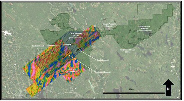 Jason Flight, Vice President of Exploration, Galway Metals stated: "This program builds on the extensive geophysical work completed to date at Clarence Stream and represents the next step in advancing the project at a district scale. By integrating new high-resolution magnetics with both shallow and deep-penetrating EM surveys, we are filling key gaps in coverage, particularly around existing resource areas, while expanding geophysics across the broader 65-kilometre prospective trend, including the Eastern Block.