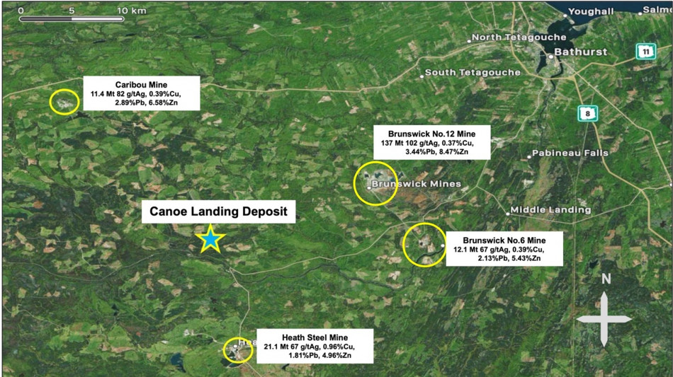 Figure 1. Bathurst Mining Camp, Historical VMS Mine Production and Location of Canoe Landing Deposit