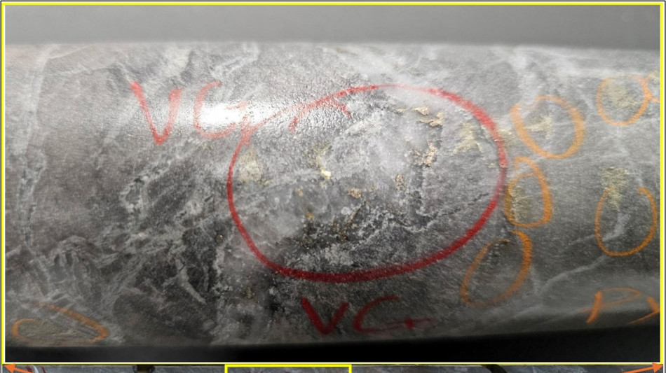 Figure 1 - Visible gold discovered in the mineralized interval within N2-26-24.