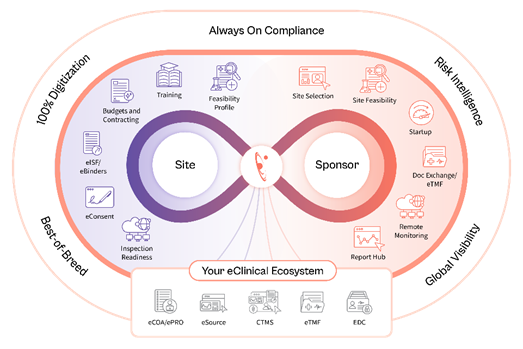 Das KI-gestützte Contracting und der Dokumentenaustausch zwischen eTMF und eISF automatisieren den Austausch von SSU-Dokumenten, während das „Redlining" mittels generativer KI die Dauer von Vertragsprüfungen minimiert, vertragliche Bedingungen in Sekundenschnelle vergleicht und die Aktivierungszeit drastisch verkürzt.